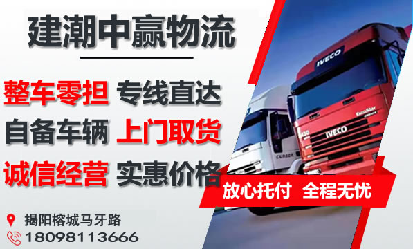 3、揭阳到中山物流专线价格优惠、运货及时,欢迎来人来电咨询揭阳到中山的物流价格、运费和报价等相关问题,建潮中赢物流将全力为您提供合理的运输方案。